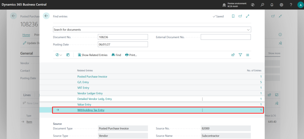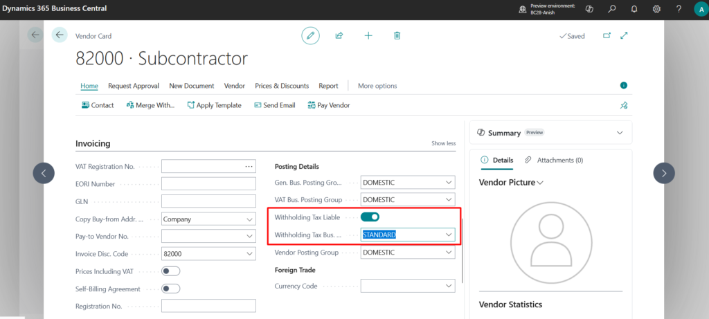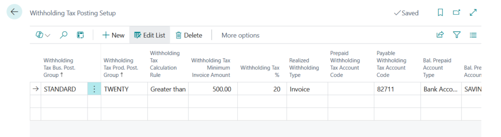 Calculate withholding taxes for vendors in Business Central (BC28)
