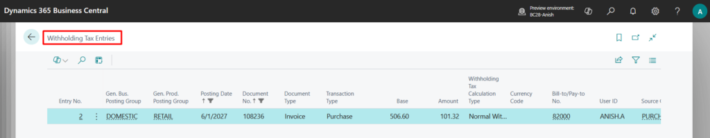 With the new Business Central release a new feature has been introduced, which allows users to calculate the WithHolding Tax in Business Central.