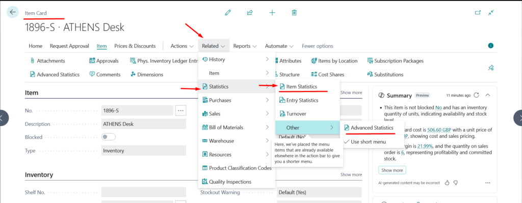 In Business Central 28, Microsoft has introduced two additional pages, including the Item Statistics page, providing much richer analytical capabilities.