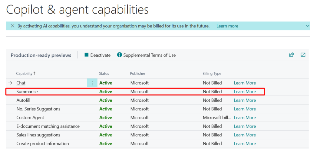 Step 1: Enable Copilot Capability : Navigate to: Copilot & Agent Capability Page, Ensure Summarize with Copilot is enabled.